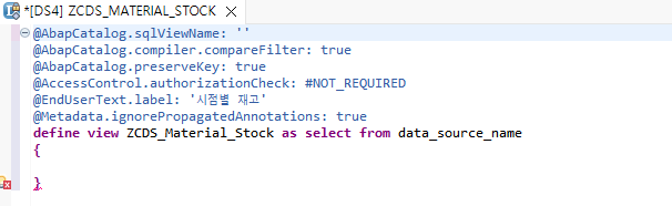 - @EndUserText.label: '시점별 재고': 사용자에게 보이는 CDS 뷰의 이름입니다.