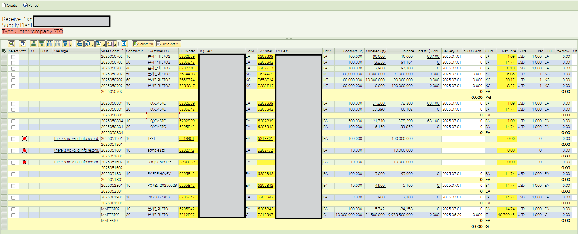 100번 스크린입니다. 이것을 바탕으로 아래 코드들로 STO(PO)를 생성합니다.